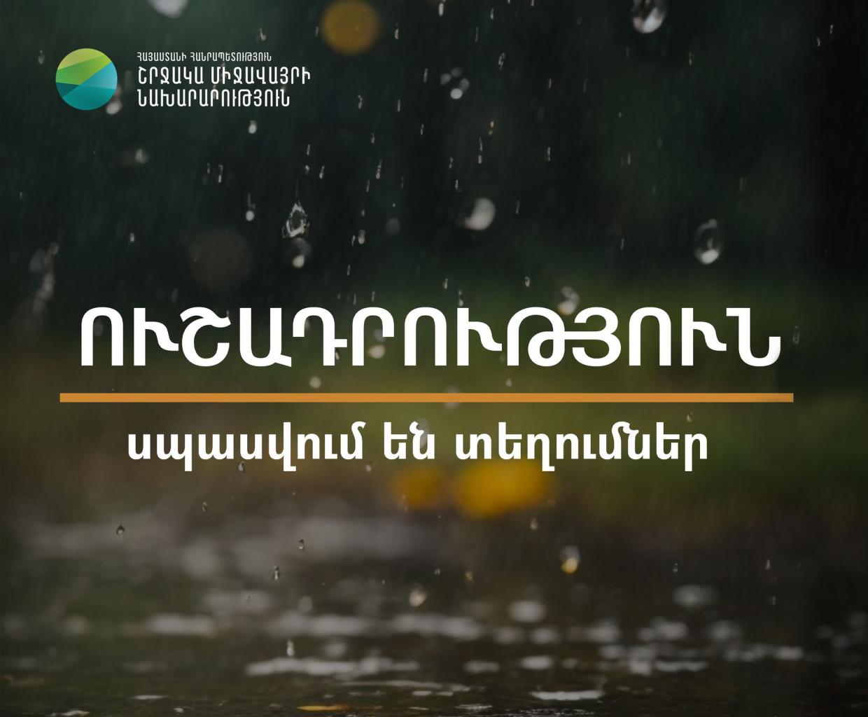 Շրջակա միջավայրի նախարարության «ՀայՀիդրոմետ» ՊՈԱԿԸ-ը նախազգուշացնում է