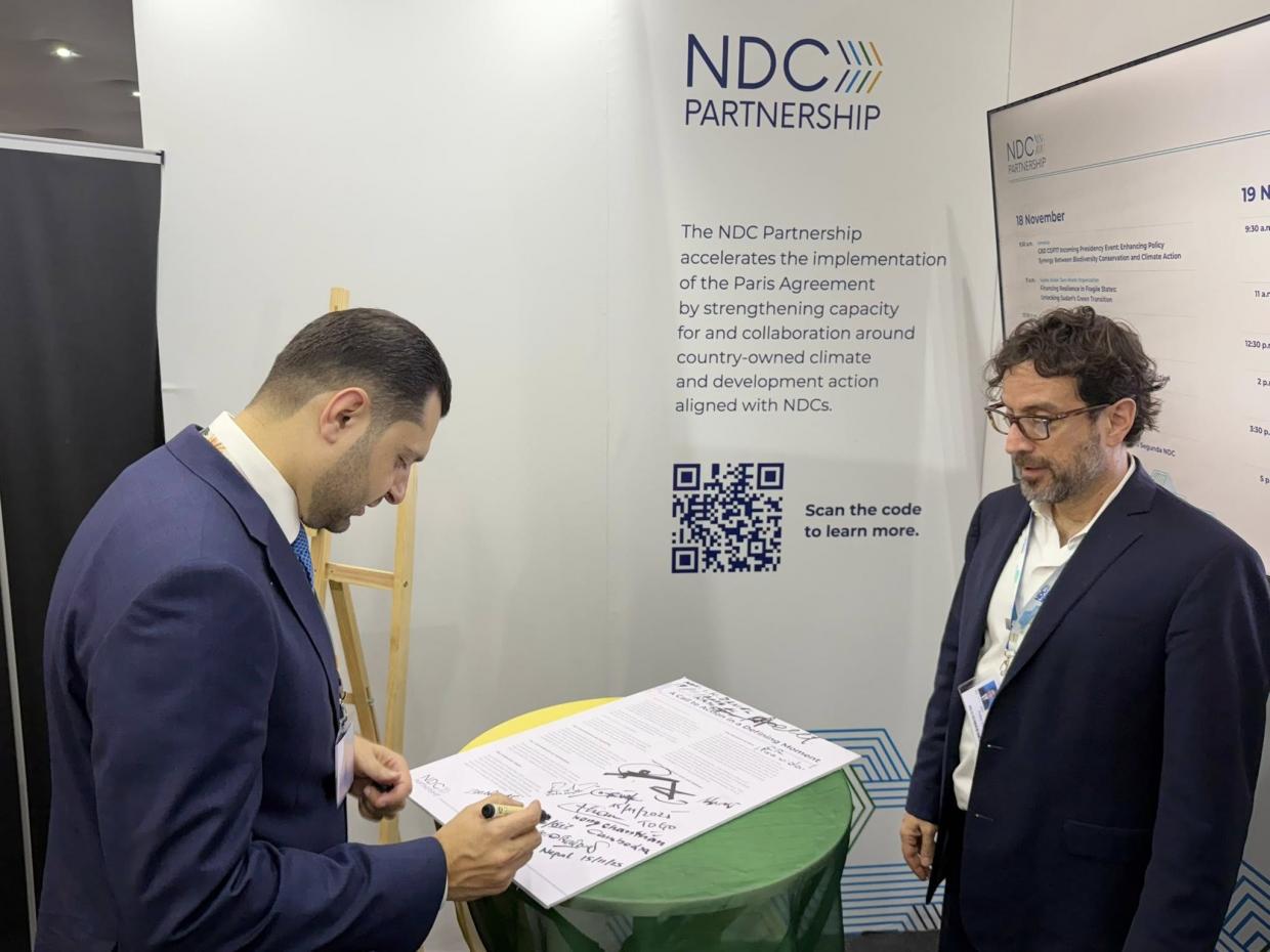 Հայաստանը պաշտոնապես միացել է Ազգային մակարդակով սահմանված ներդրումների գործընկերության կողմից ներկայացված և Բրազիլիայի ու Դանիայի համանախագահությամբ ձևավորված «NDC Action Now – գործողություններ վճռորոշ պահին» հռչակագրին՝ վերահաստատելով իր հանձնառությունը կլիմայական փոփոխությունների դեմ համատեղ, արագացված և արդյունավետ գործողություններին։