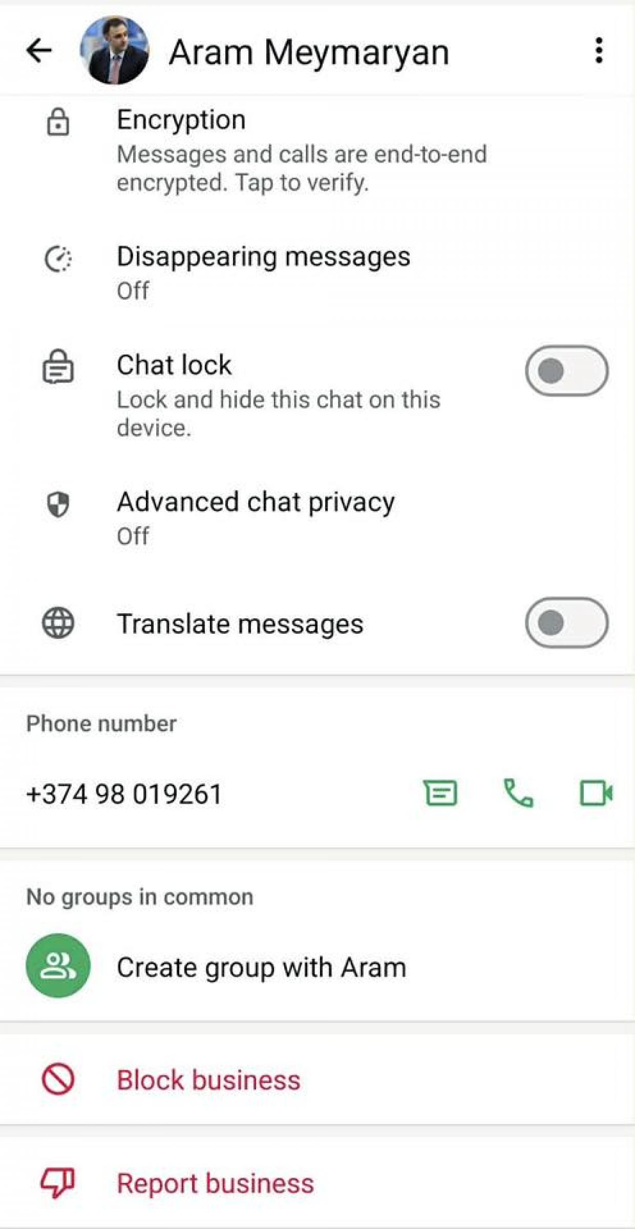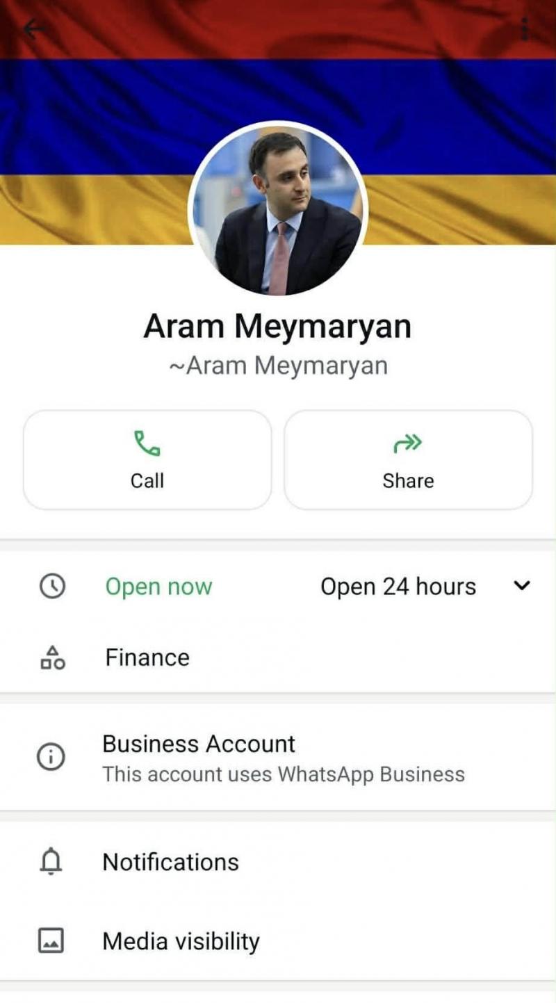 Տեղեկացնում ենք, որ WhatsApp-ում բացվել է կեղծ օգտահաշիվ Շրջակա միջավայրի նախարարի տեղակալ Արամ Մեյմարյանի անուն-ազգանունով։