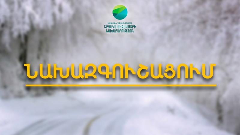 Դեկտեմբերի 27-ի կեսօրից հետո դեպի երեկո և դեկտեմբերի 27-ին լույս 28-ի գիշերը ու առավոտյան հանրապետության ողջ տարածքում, դեկտեմբերի 28-ի ցերեկը Գեղարքունիքում, Արարատում, Վայոց ձորում ու Սյունիքում սպասվում է ձյուն, առանձին հատվածներում՝ առատ։
