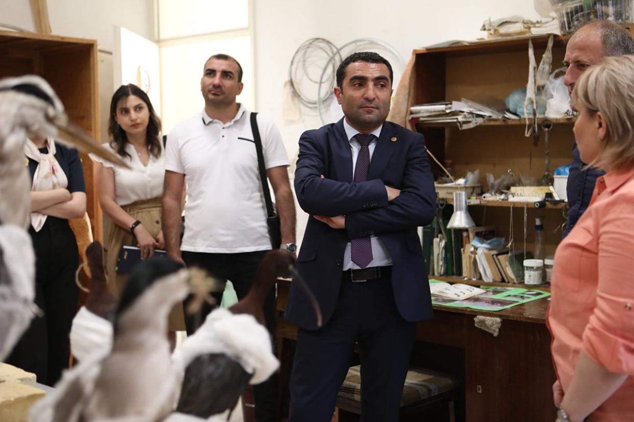 Deputy Minister A. Mazmanyan along with the newly appointed Acting Director of State Museum of Nature of Armenia L. Galstyan toured the exhibition halls of the museum. Rare specimens of the flora and fauna of the Republic of Armenia are displayed in the four halls of the museum. Through a short excursion they got acquainted with the exhibits of the unique (endemic) species of the landscape diversity, flora and fauna of the territory of Armenia.