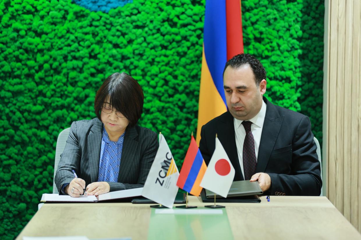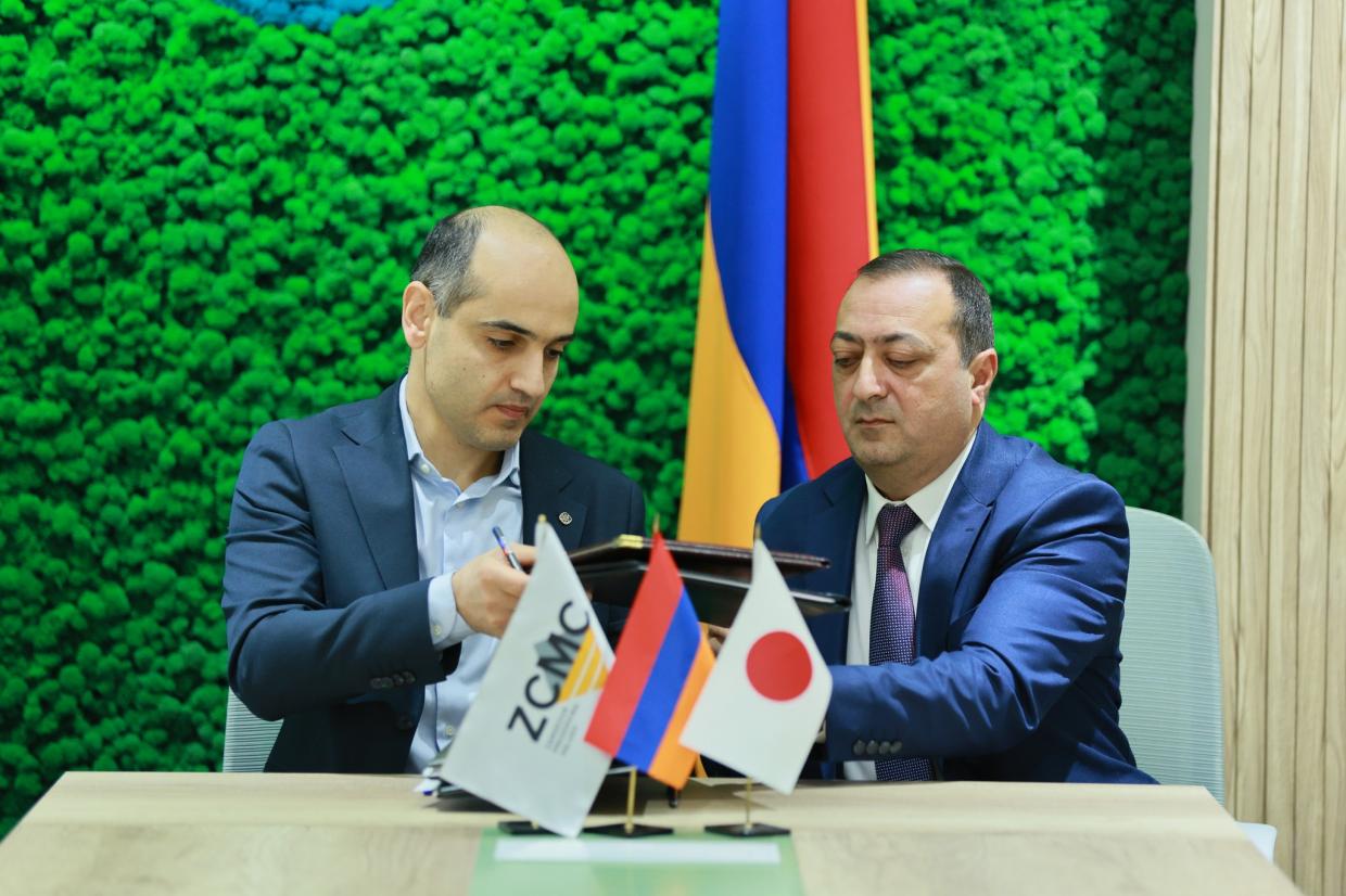 The meeting focused on the signing of a Memorandum of Understanding between the Ministry of Environment of the RA, the Ministry of Territorial Administration and Infrastructure, the Japanese company KOMAIHALTEC, and the “Zangezur Copper and Molybdenum Combine” CJSC.