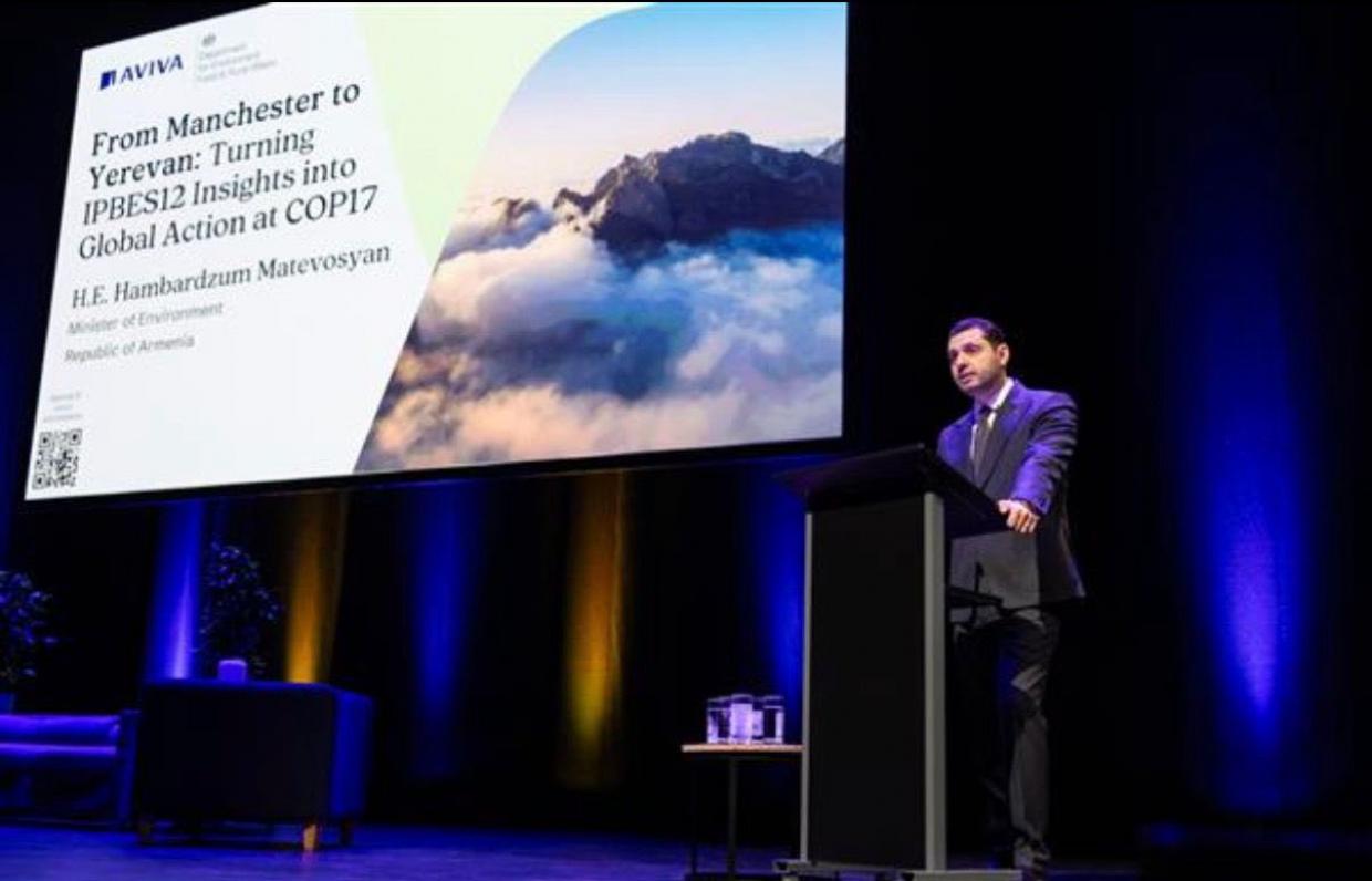Hambardzum Matevosyan, Minister of Environment of the RA, participated in the “Business and Finance Day” event, held within the framework of the 12th Plenary Session of the Intergovernmental Science-Policy Platform on Biodiversity and Ecosystem Services (IPBES-12) in Manchester. The Minister delivered a speech presenting the Ministry’s priorities and cooperation opportunities in the fields of biodiversity conservation and ecosystem services valuation.