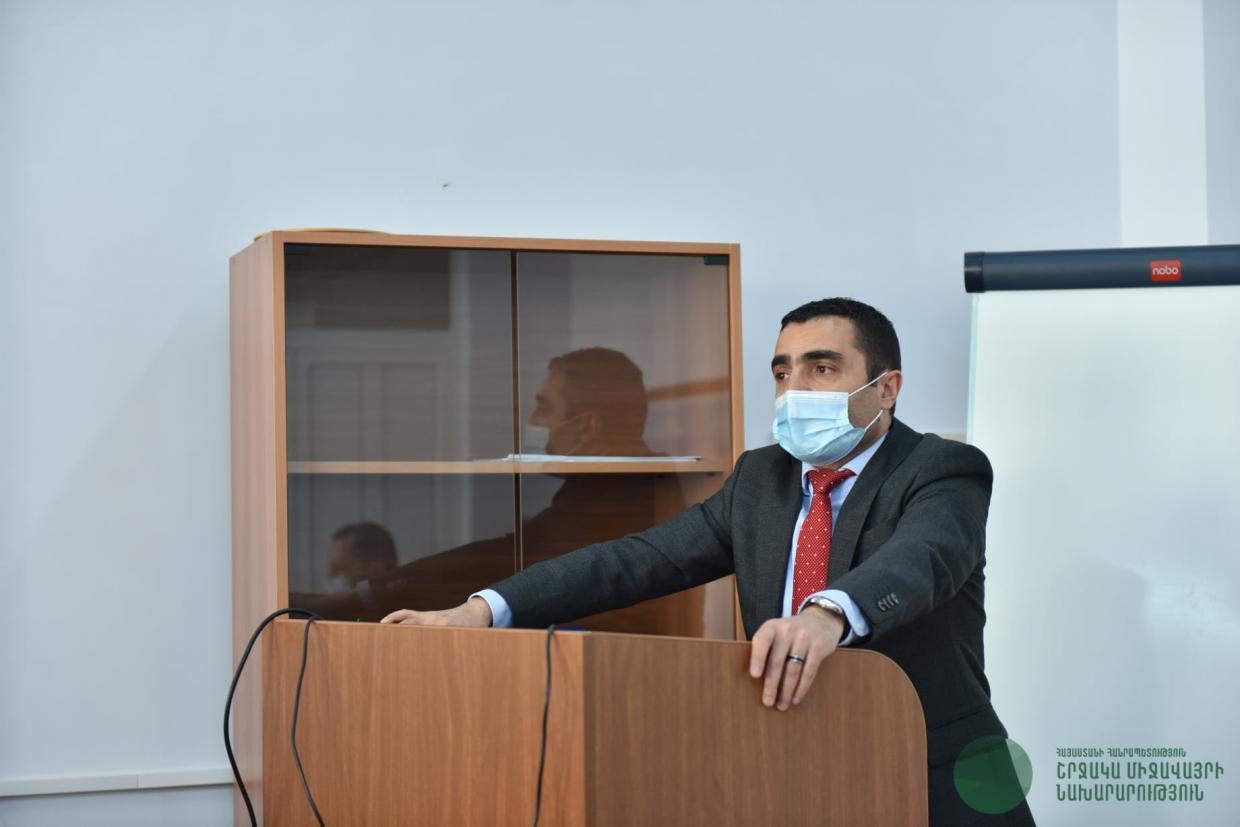 Minister Petrosyan toured the familiar faculty, afterwards on the initiative of Dean of the Faculty, Candidate of Geological Sciences, Associate Professor Mr. Marat Grigoryan, had a meaningful meeting-discussion with the teaching staff and students. The range of discussed issues was quite wide - from professional to internal political.