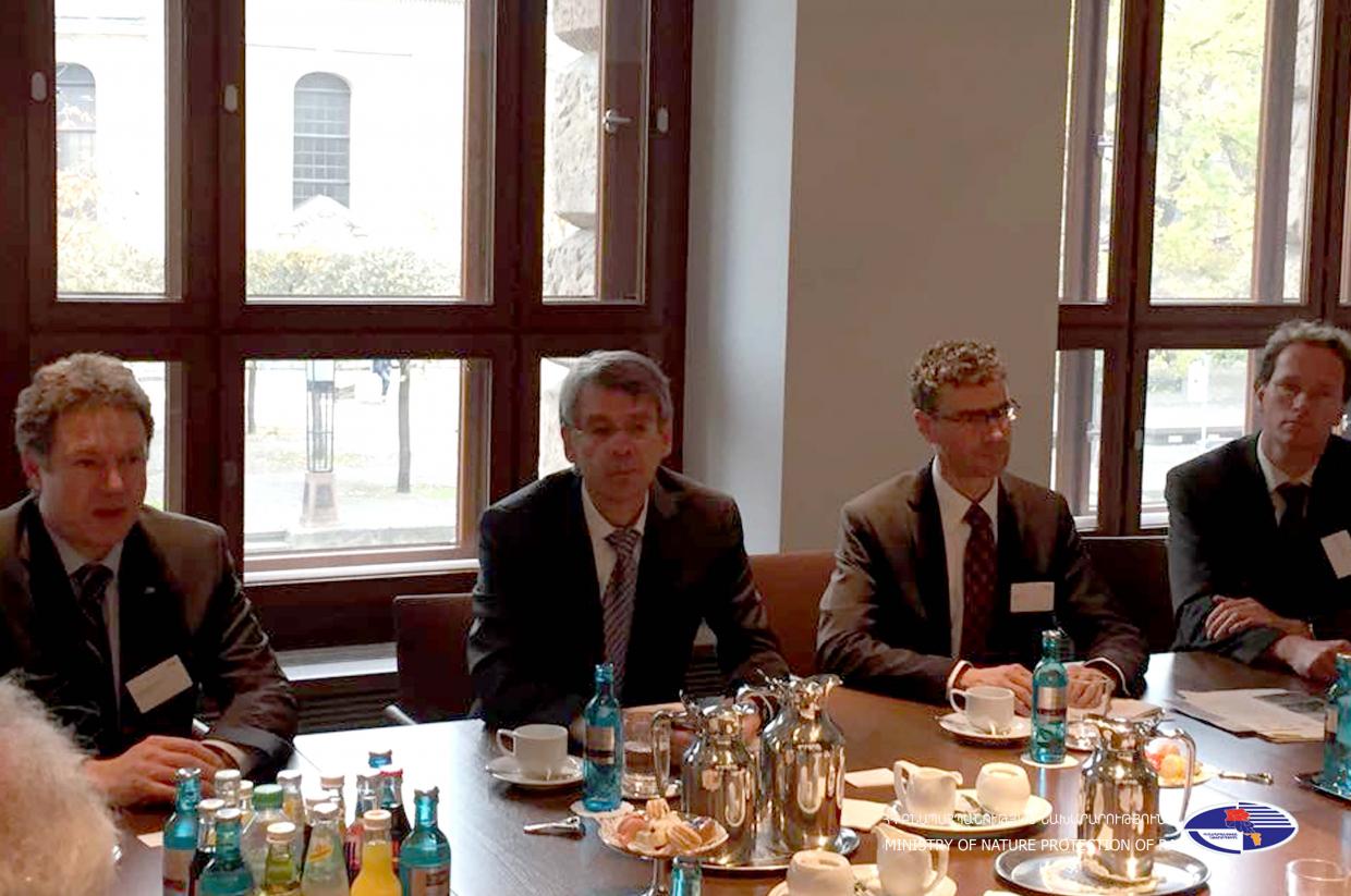 ՀՀ բնապահպանության նախարար Արամայիս Գրիգորյանը Գեմանիայի Դաշնային Հանրապետություն կատարած այցի շրջանակներում հանդիպում է ունեցել Գերմանիայի զարգացման բանկի /KfW/ խորհրդի անդամների հետ: Հանդիպման ընթացքում կողմերը քննարկել են KfW-ի աջակցությամբ Հայաստանում իրականացվող ծրագրերը, մեկնարկային փուլում գտնվող ծրագրերի հեռանկարները, ինչպես նաև հետագա համագործակցության զարգացման ուղղությունները: Մասնավորապես, անդրադարձ է եղել «Հայաստանում պահպանվող տարածքների համար աջակցության ծրագրի» 3-րդ փուլին, որի համար KfW-ն ՀՀ-ին տրամադրում է 8 միլիոն 250 հազար եվրո գումար: Քննարկված հեռանկարային մի շարք ծրագրերի համատեքստում նախարար Արամայիս Գրիգորյանն ընդգծել է, որ ՀՀ-ի համար այս պահին կարևոր և թիրախային ուղղություններ են Արարատյան դաշտի ջրօգտագործման ավտոմատ, կենտրոնացված կառավարման համակարգի ներդրումը, ՀՀ 6 ջրավազանային կառավարման պլանների մշակումը, ինչը թույլ կտա առավել արդյունավետ և նվազագույն կորուստներով իրականացնել ջրային ռեսուրսների կառավարումը մեր երկրում, ինչպես նաև ՀՀ հողերի բնապահպանական վիճակի ուսումնասիրության, գնահատման և միասնական տվյալների բազայի և էլեկտրոնային քարտեզների ստեղծումը:
