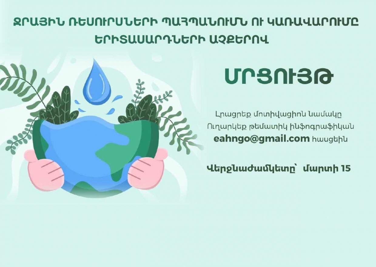 Շրջակա միջավայրի նախարարությունը և «Շրջակա միջավայր և առողջություն» ՀԿ-ն համատեղ հայտարարում են «Ջրային ռեսուրսների պահպանումը և կառավարումը երիտասարդների աչքերով» մրցույթ։