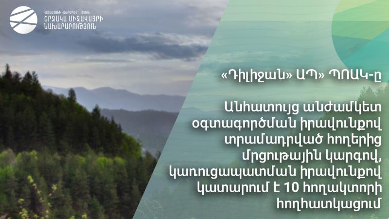«Դիլիջան» ազգային պարկ» ՊՈԱԿ-ը անհատույց, անժամկետ օգտագործման իրավունքով տրամադրված հողերից մրցութային կարգով կառուցապատման իրավունքով կատարում է 10 հողակտորի հողհատկացում