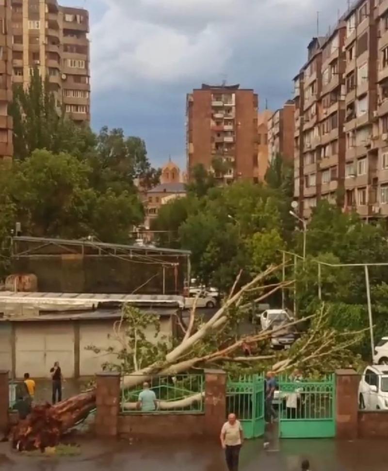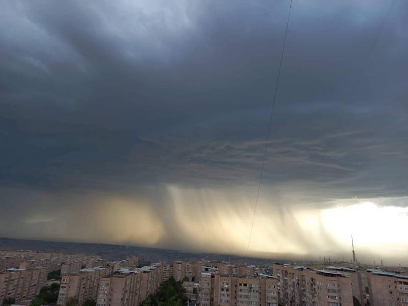 Երեկ երեկոյան Երևանի արևելյան և հարավային հատվածներում դիտվել է ուժգին ամպրոպ, տեղատարափ անձրև և կարկուտ, որն ուղեկցվել է ուժգին քամիներով։