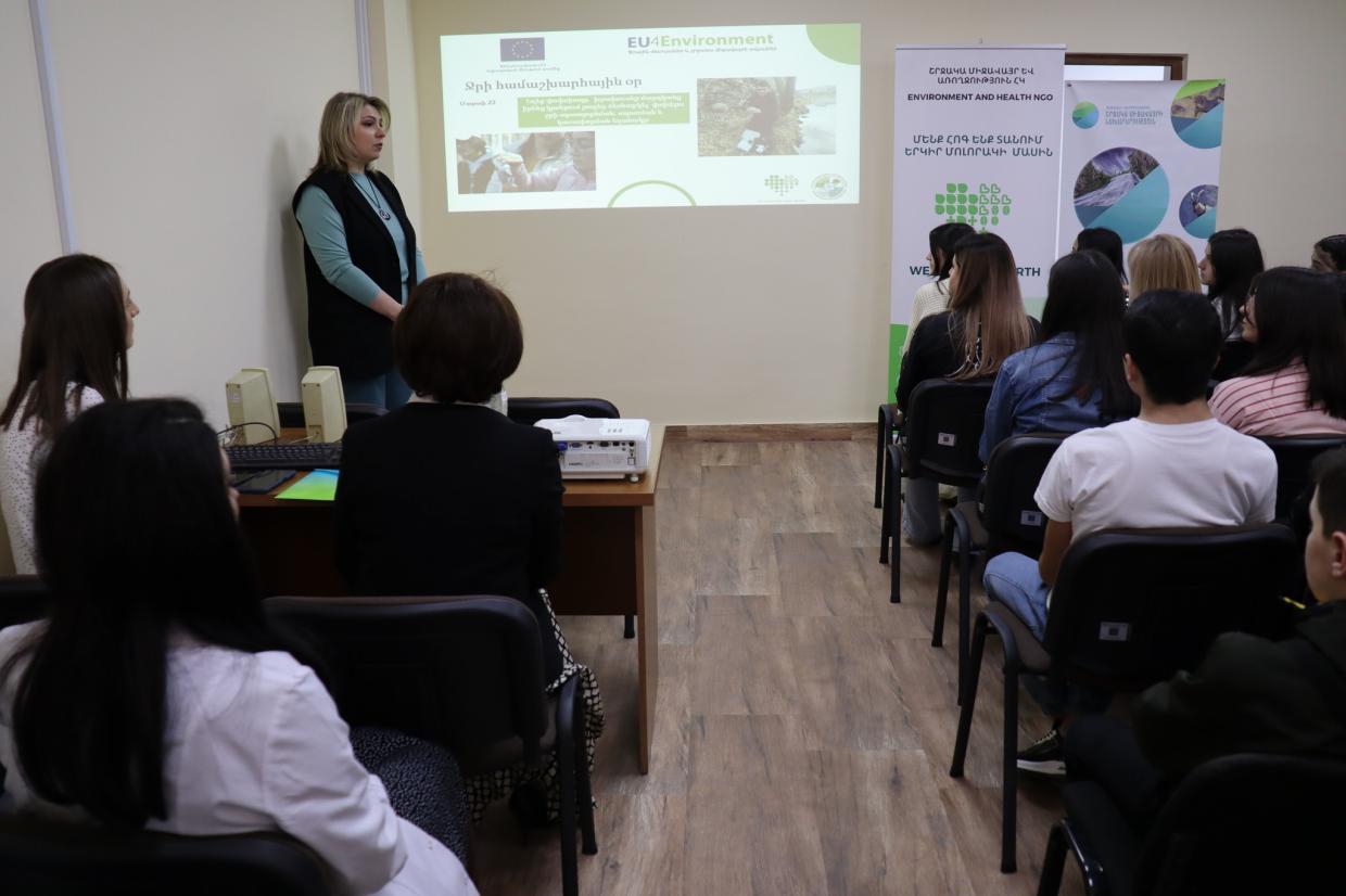 Այսօր՝ Ջրի համաշխարհային օրը, մարզերից ժամանած շուրջ հինգ տասնյակ աշակերտներ, ուսանողներ և ուսուցիչներ Շրջակա միջավայրի նախարարության «Հիդրոօդերևութաբանության և մոնիթորինգի կենտրոն» ՊՈԱԿ-ի լաբորատորիաներում ծանոթացան մակերևութային ջրերի, մթնոլորտային օդի, հողերի և հատակային նստվածքների ազգային մոնիթորինգի աշխատանքներին, կիրառվող լաբորատոր մեթոդներին ու սարքավորումներին, ոլորտի մասնագետներին ներկայացրին ջրի և օդի որակի՝ իրենց իրականացրած մոնիթորինգի ընթացքն ու արդյունքները, քննարկեցին ջրային ռեսուրսների կառավարման ժամանակ հանրության մասնակցության կարևորության մասին։