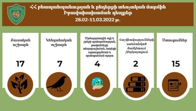 Իրականացված վերահսկողության ընթացքում արձանագրվել է 39 դեպք, որից 24-ով հաշվարկվել է 2.603.340 ՀՀ դրամի չափով շրջակա միջավայրին հասցված վնաս, 6 դեպքով նշանակվել է 700.000 ՀՀ դրամի չափով վարչական տուգանք։