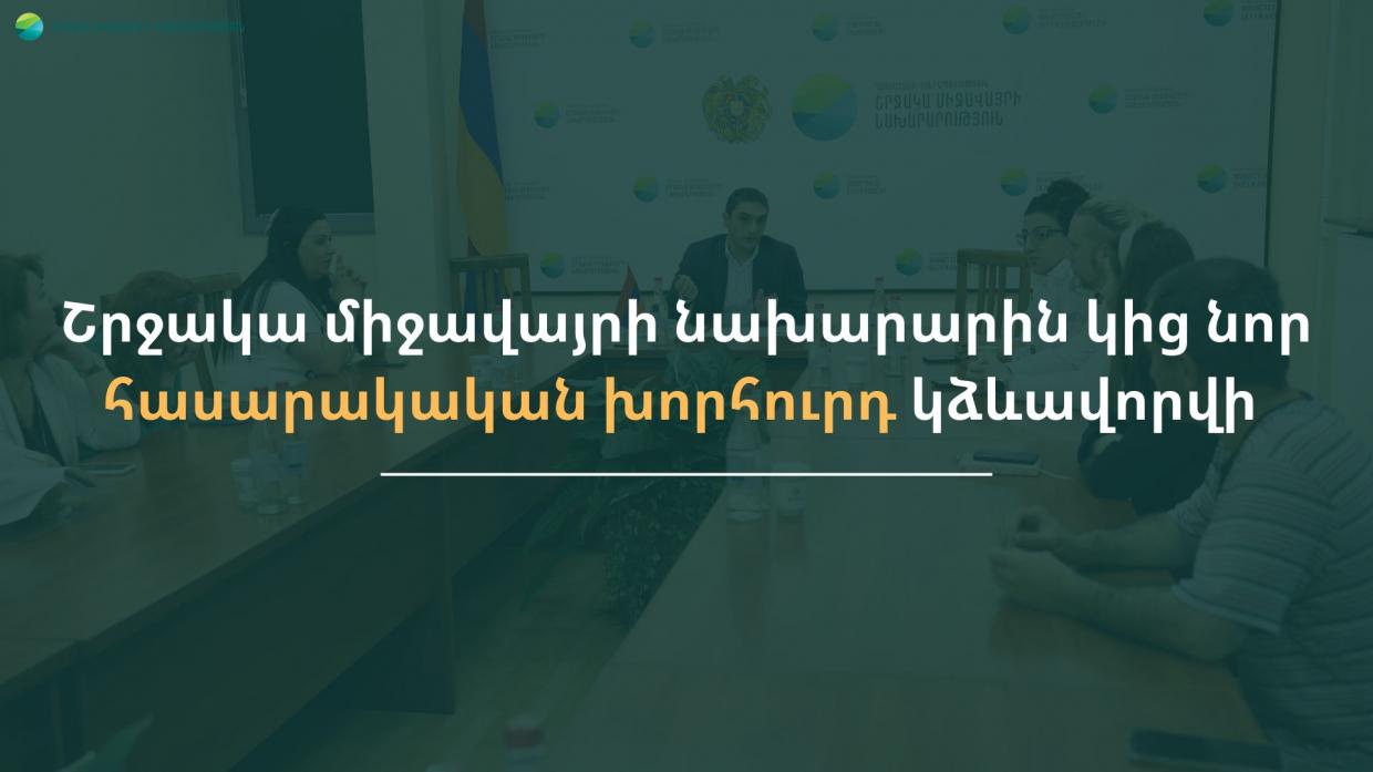 Շրջակա միջավայրի նախարար Հակոբ Սիմիդյանի որոշմամբ նախատեսվում է ձևավորել նախարարին կից նոր Հասարակական խորհուրդ։ Նախկին խորհրդի կազմը լուծարվել է։