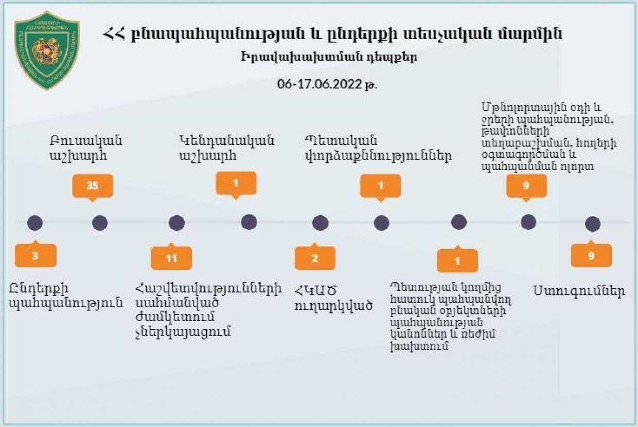 ՀՀ բնապահպանության և ընդերքի տեսչական մարմնի կողմից 2022 թվականի հունիսի 6-ից 17-ն ընկած ժամանակահատվածում իրականացվել է.