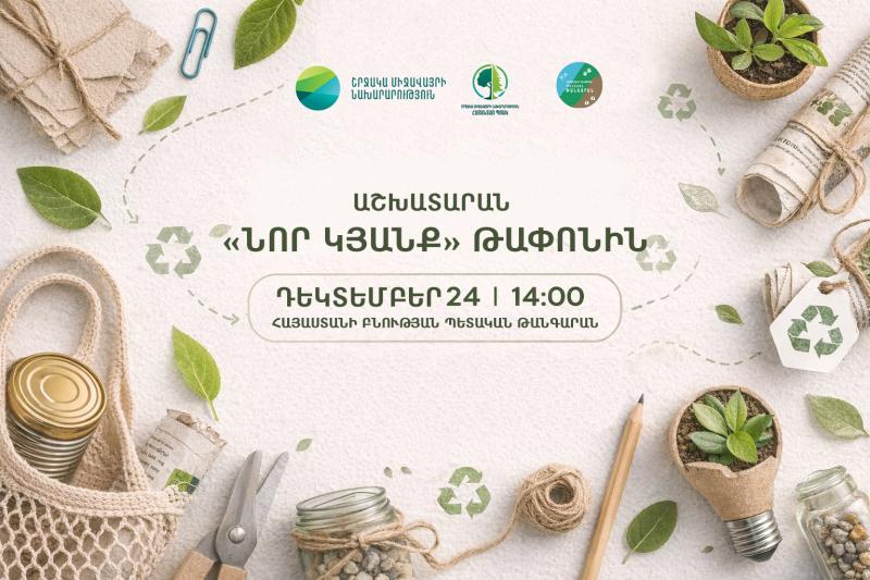 Շրջակա միջավայրի նախարարությունը և «Հայանտառ» ՊՈԱԿ-ը հրավիրում են մասնակցելու «Նոր կյանք թափոնին» միջոցառմանը, որը տեղի կունենա դեկտեմբերի 24-ին, ժամը 14։00-ին՝ Բնության պետական թանգարանում։