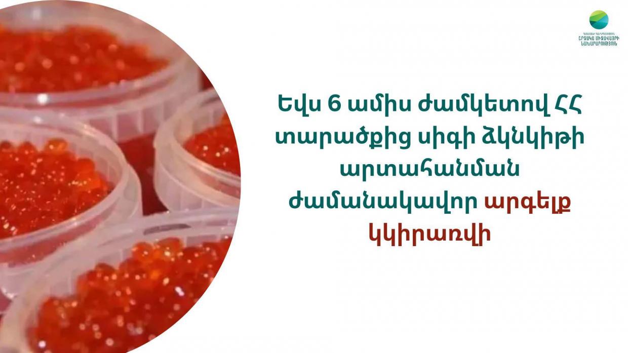 Գործադիրն այսօրվա նիստում հավանության է արժանացել Շրջակա միջավայրի նախարարության կողմից մշակված «Հայաստանի Հանրապետության տարածքից սիգի ձկնկիթի արտահանման ժամանակավոր արգելք կիրառելու մասին» կառավարության որոշման նախագիծը։