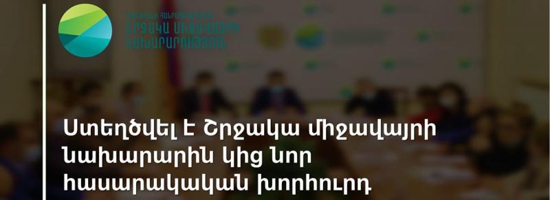 Շրջակա միջավայրի նախարարության խնդիրների լուծման և բարեփոխումների ու ռազմավարական ծրագրերի իրականացման գործընթացին քաղաքացիական հասարակության լիարժեք մասնակցության ապահովման նպատակով Շրջակա միջավայրի նախարար Ռոմանոս Պետրոսյանի հրամանով ստեղծվել է նախարարին կից նոր հասարակական խորհուրդ. հաստատվել է խորհրդի կազմը և աշխատակարգը։ Նույն հրամանով ուժը կորցրած է ճանաչվել Հայաստանի Հանրապետության բնապահպանության նախարարի 2014 թվականի սեպտեմբերի 2-ի «Հայաստանի Հանրապետության բնապահպանության նախարարին կից հասարակական խորհուրդ ստեղծելու և հասարակական խորհրդի կազմն ու աշխատակարգը հաստատելու մասին» N256-Ա հրամանը։