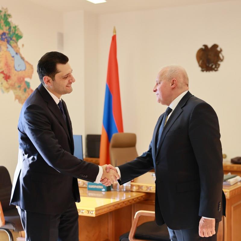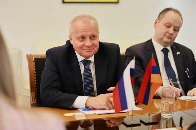 Министр окружающей среды Республики Армения Амбарцум Матевосян принял делегацию во главе с Чрезвычайным и Полномочным послом РФ в Армении Сергеем Копыркиным.